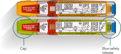 1. The blue safety release helps prevent accidental injection of the device. Do not remove the blue safety release until you are ready to use it.